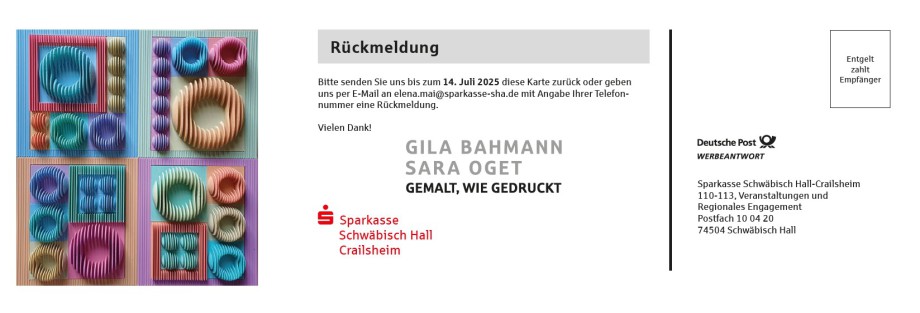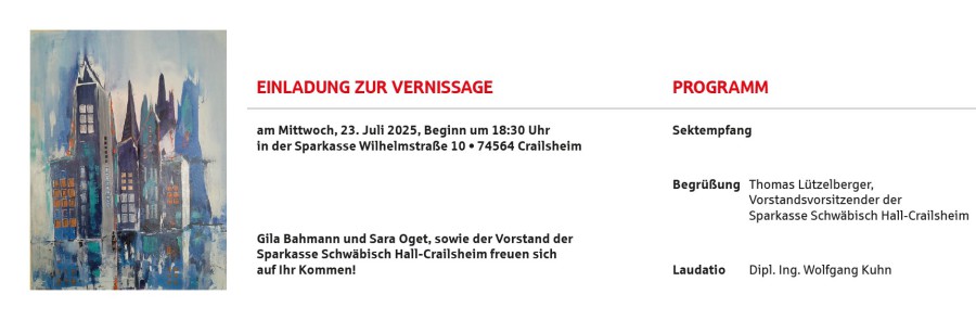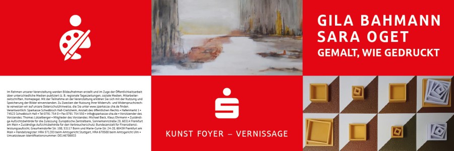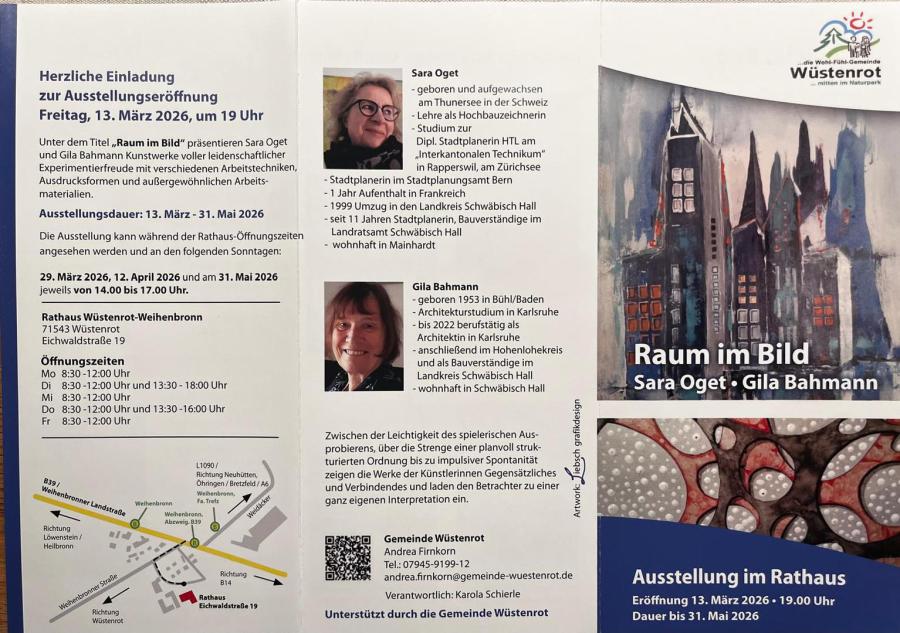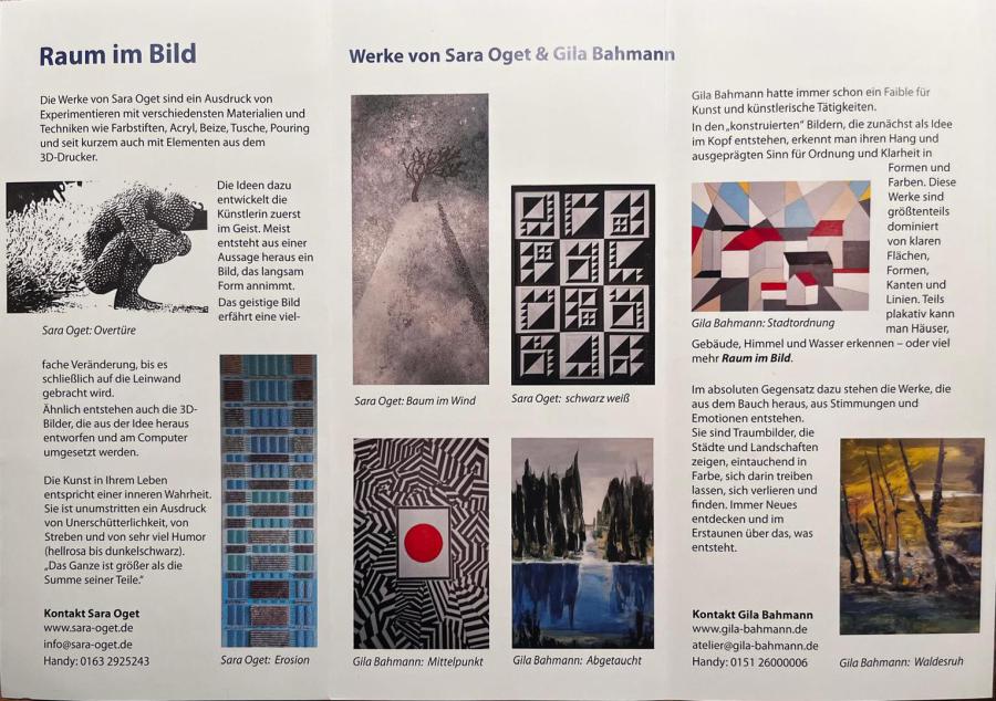 Im großen, weiten, hellen Treppenhaus des Ärztehauses in Gaildorf können Sie ab dem 5. September bis Ende Jahr meine Werke und die Werke von Gila Bahmann (www.gila-bahmann.de) zu den Öffnungszeiten des Ärztehauses anschauen.